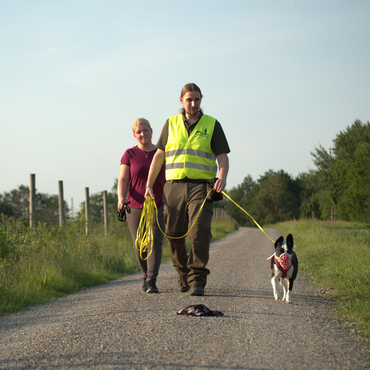 Eine Warnweste zum Eigenschutz für den Hundeführer.
